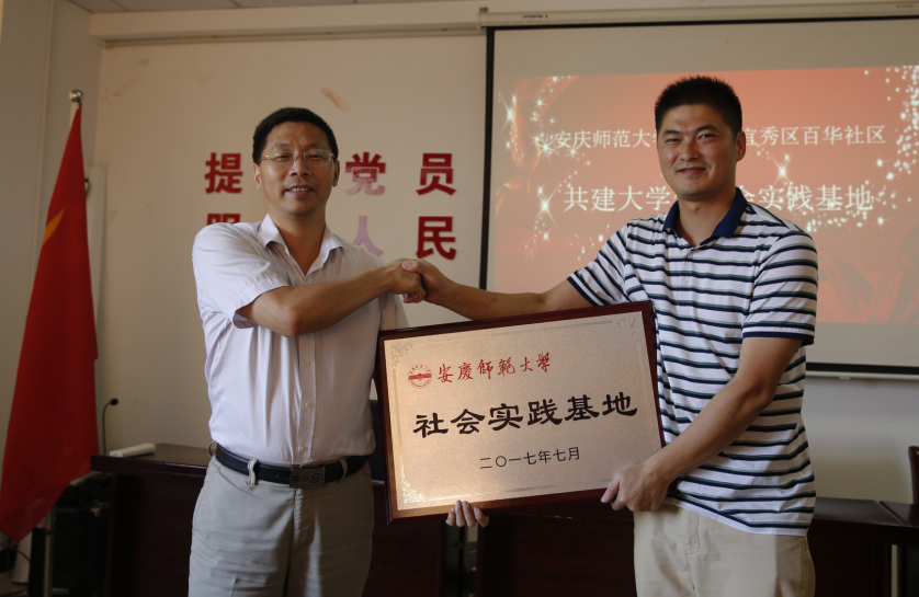 7月12日下午,副校长汪时珍、校团委负责同志、传媒学院党总支负责同志,大龙山镇党委委员胡建华出席77779193永利与宜秀区大龙山镇百华社区共建社会实践基地授牌仪式,传媒学院广播电视学学生党支部暑期“三下乡”团队成员参加仪式,仪式在宜秀区大龙山镇百华社区党员活动室举行。