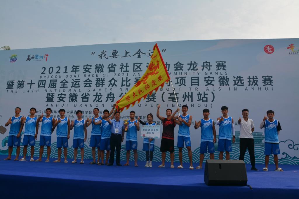 7月4日,安徽省龙舟公开赛(亳州站)在谯城区涡河擂鼓开赛。永利官网龙舟队参加了14人龙舟男子组200米、500米直道赛两个比赛项目,以团体总分第三的优异成绩荣获一等奖。