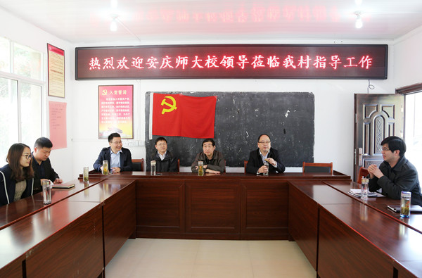 4月8日上午,校党委常委、副校长刘友忠在校党委常委、组织部副部长戴卫义陪同下,送永利官网新选派扶贫专干杜百忍同志到太湖县天华镇西冲村任职,调研永利官网驻村帮扶工作开展情况并召开新任驻村干部见面会。太湖县副县长鲁伟文,天华镇党委书记都旭超陪同调研。