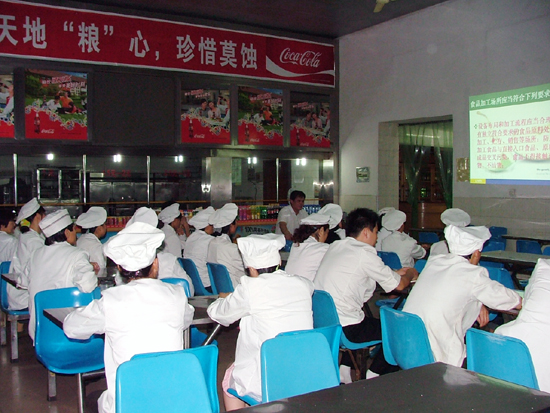 后勤管理处副处长方双陆同志主持培训班,他要求食堂经营单位加强食堂管理人员和从业人员的职业道德、职业意识和职业素质培训,切实做到职业道德讲良心、讲人格、讲亲情,职业意识讲习惯、讲知识、讲秩序,职业素质讲制度、讲法规、讲落实,为确保校园稳定,维护广大师生员工身心健康做出新的贡献。(周木强)