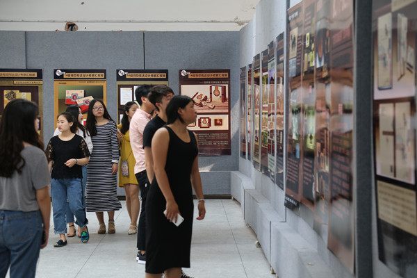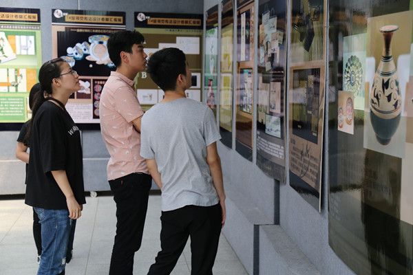 展厅里一幅幅作品展示的内容和主题各不相同。莫高窟壁画,以鲜艳明亮的色调为主,代表了西北特有的地域因素,让人感受千年文明的变迁;敦煌文化中的独特文案,是中外文化交流融合后的特有产物,让人体会在长久文化历程中形成的各种各样的文化符号的奇妙。学生通过对“一带一路”的实地考察,完成的作品中则提取了传统元素,并结合现代技术,加以变化和设计,从而体现出对于悠久历史文化的传承与发展。