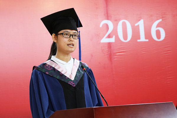本科毕业生代表叶亮、硕士毕业生代表沐向琴今年分别考取了硕士研究生、博士研究生,他们与现场老师、同学们分享了他们大学四年的历练与美好回忆。“四年前,我们满怀梦想,带着期盼,共同走进母校大门,四年后的今天,我们顺利毕业,大学生活将画上一个圆满的句号。”叶亮说,他们的拼搏与收获打动了在场的师生们,赢得阵阵掌声。