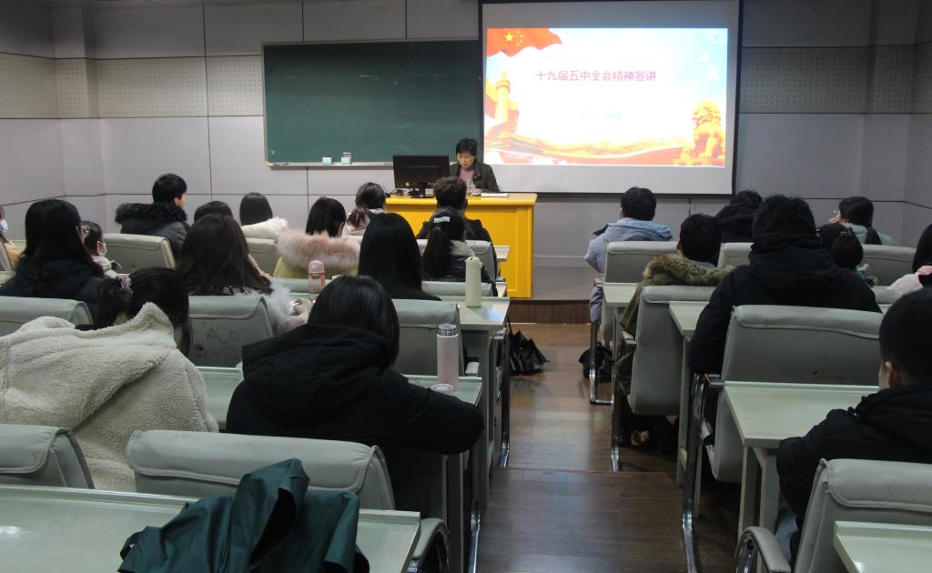 胡腊香围绕习近平总书记在十九届五中全会上的重要讲话精神,带领同学们全面回顾了十九届五中全会召开的历史背景,从全面建成小康社会取得的决定性成就、《中共中央关于制定国民经济和社会发展第十四个五年规划和二〇三五年远景目标的建议》的核心要义、主要内容以及实现宏伟目标的政治保证四个方面对十九届五中全会会议精神进行深入系统解读。