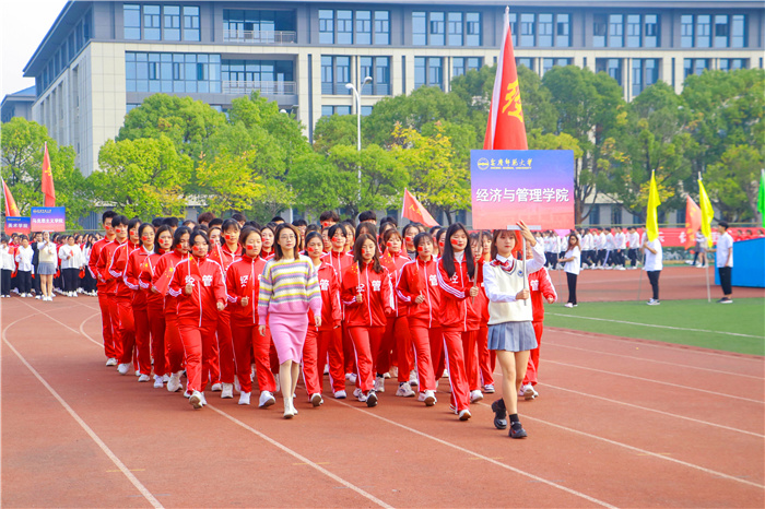 在庄严的国歌声中,国旗护卫队脚踏正步、动作整齐地过走主席台,接受全校师生检阅。校旗队、彩旗队、19个学院运动员方队以及裁判员方队,身着特色服饰,迈着整齐的步伐,喊着响亮的口号走过主席台,充分展现了永利官网学生昂扬向上、朝气蓬勃的精神面貌。