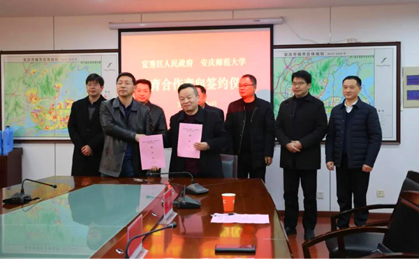 2月4日,学校与安庆市宜秀区人民政府在宜秀区政府大楼会议室举行教育合作意向签约仪式。副校长汪时珍,宜秀区政协主席汪龙生,安庆市教体局副局长陈党生、北部新城建设管理局局长吴传斗,中安龙山建设集团董事长汪小苗等出席仪式。学校发展规划处、教师教育学院,宜秀区教体局等单位负责同志参加了签约仪式。