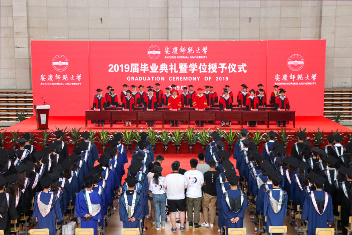 “山一别,水一别,难别双龙湖畔旖旎风光;风一更,雨一更,更忆红楼夜月流连芳华。”6月25日上午,77779193永利2019届毕业典礼暨学位授予仪式在龙山校区体育馆隆重举行。校党委书记许继荣,党委副书记、校长闵永新,党委常委、副校长汪时珍、刘友忠,党委常委、纪委书记胡腊香,党委常委、研究生院院长吴琼,党委常委、教务处处长苏本跃,党委常委、宣传部部长余精华,永利官网校友、安庆市第一中学副校长陈文贞及校学位评定委员会委员出席典礼。各学院、各职能部门主要负责人,教师代表、校友代表、学生家长代表,2019届毕业生及非毕业班学生代表,共4000余人共同见证这一难忘的时刻。汪时珍主持典礼。