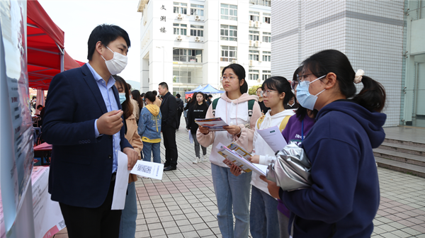 与以往不同的是,今年双选会现场增加了征兵宣传,鼓励大学生参军入伍。“我从小就有个军营梦,很希望能够戍边卫国。”外国语学院英语专业2020(7)班的马书豪在得知征兵宣传后,便早早地来到现场询问。校武装部工作人员表示,希望能够有更多的毕业生参军入伍,这也是一种高质量的就业方式。“国家很支持大学生入伍,出台了很多激励政策,对于大学生们来说,投身军营是把个人价值实现与国家发展需要紧密结合的一种很好的途径。”校武装部工作人员说。