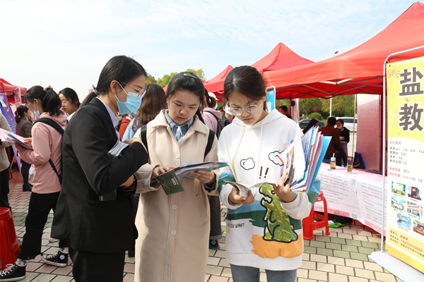 上午8点半左右,就有毕业生陆续来到会场,他们带着简历,浏览各展位前的招聘信息,寻找适合自己的职业岗位。用人单位也纷纷向学生宣传介绍企业的特色、招聘岗位以及相关薪酬待遇等信息,热情详细地为学生们解答问题。