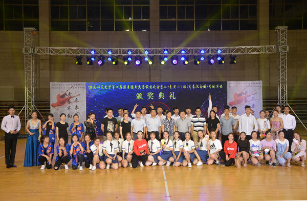 动感的音乐、炫彩的灯光和欢脱的舞蹈构成了一场精彩绝伦的晚会。6月27日晚,体育学院在校篮球馆举行第四届健身操舞大赛颁奖晚会暨2015级体育表演专业(1)班专场汇报演出。校党委常委、纪委书记胡腊香,校党委常委、组织部部长、体育学院党委书记戴卫义,校党委常委、教务处处长苏本跃及学生处、校团委等部门负责同志与学生们一同观看了表演。