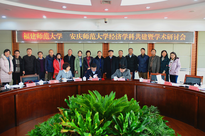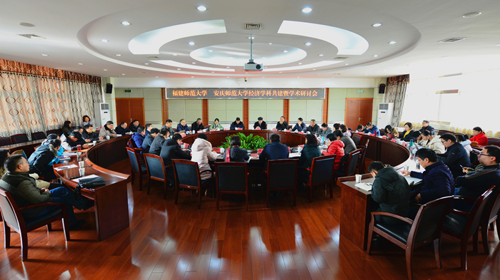 1月12日,福建师范大学与永利官网经济学科共建暨学术研讨会在龙山校区行政楼二楼举行。中央马克思主义理论研究与建设工程首席专家、全国中国特色社会主义政治经济学研究中心(福建师范大学)主任、福建师范大学原校长李建平率领福建师范大学经济学、马克思主义理论学科共二十四位专家前来参会。校党委副书记、校长闵永新,校党委常委、副校长汪时珍看望与会专家,对各位来宾表示热烈的欢迎。校党委常委、研究生院院长吴琼主持研讨会。永利官网经济与管理学院、马克思主义学院负责人和教师代表近三十人参加会议。