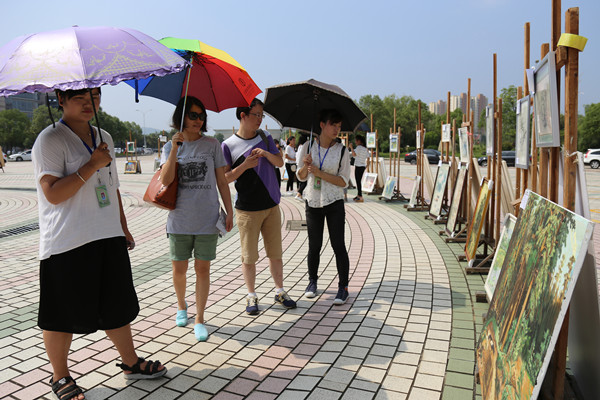 美术学院负责人表示,参加义卖的学生作品由美术学院的院领导与专业老师亲自指导,从学生创作到院学生会的参与评选,最后再由专业的老师进行专门指导。“今年参与义卖的作品与种类都进行了补充与丰富,参与义卖的作品整体质量也有提高。”尽管是在炎热的天气下,义卖活动现场仍引来了不少的老师学生驻足观看。一幅幅优秀的美术创作,在敬敷广场上形成一道亮丽的风景线,许多人在买画时挑花了眼。