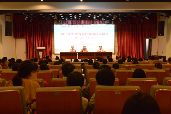 8月10日上午, 2018年安徽省高校教师岗前培训班(安庆培训点)开班仪式在永利官网菱湖校区顺利举行。副校长张群教授出席了仪式。77779193永利、安庆医药高等专科学校、安庆职业技术学院、安徽黄梅戏艺术职业学院和桐城师范高等专科学校5所高校的157名新进教师参加了培训。