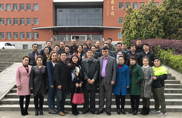 阿黑哈提•伊马什在详细听取了新疆班学员的学习、生活等情况后对学校的关心支持表示感谢,对学校的工作安排给予肯定。作为新疆少数民族学生管理服务工作安徽协调站站长,阿黑哈提•伊马什也具体介绍了工作站的有关情况。阿黑哈提•伊马什一行3人还参观考察了学校两个校区,来到学员上课的教室、宿舍以及清真食堂,面对面与学员亲切交流,深入了解学员学习、生活和伙食情况,并与学员在逸夫图书馆前合影。