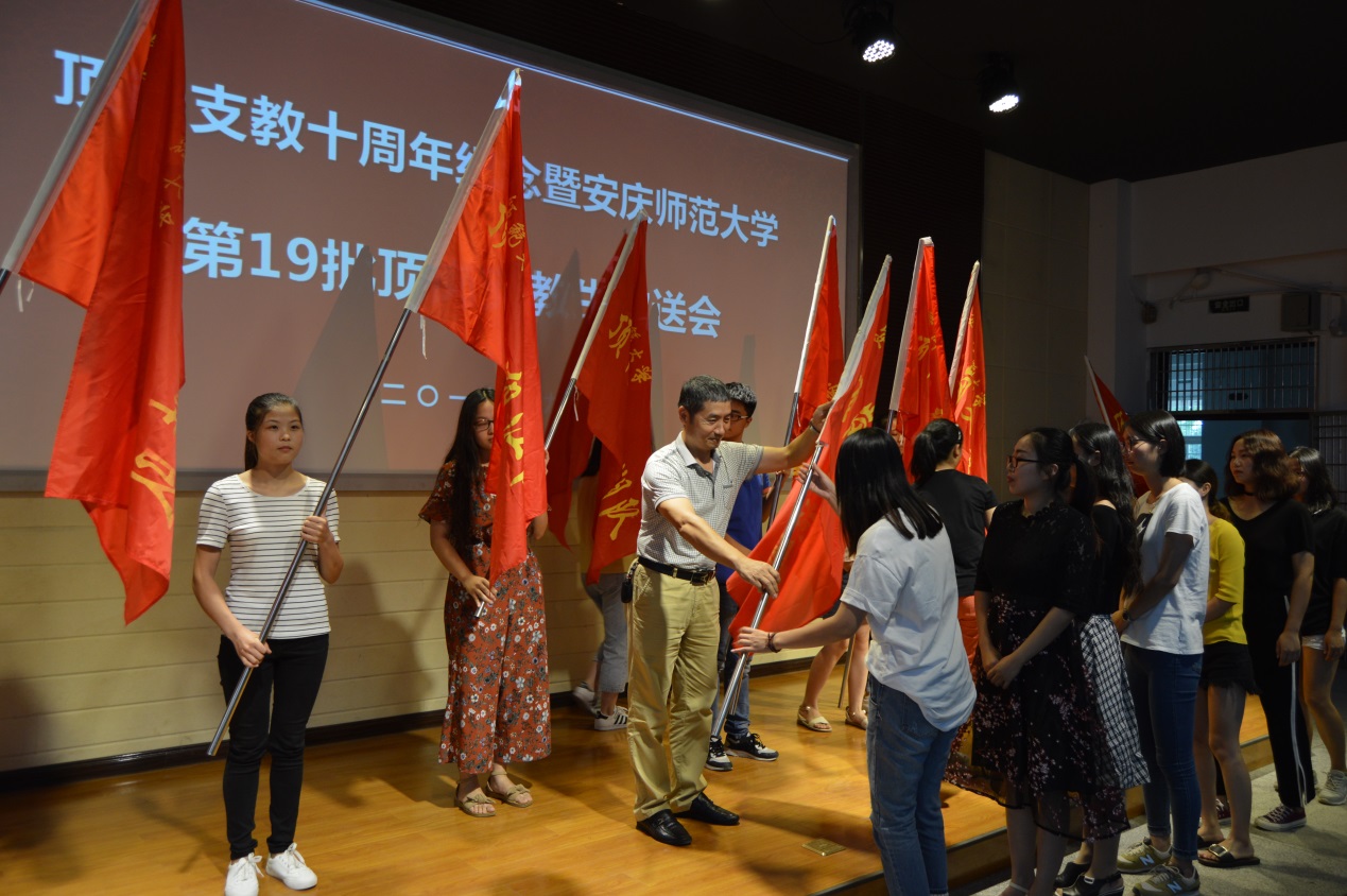 9月1日,永利官网召开顶岗支教十周年纪念暨第十九批顶岗支教学生赴基层欢送会。副校长张群出席会议并为支教学生授旗。党委组织部、教务处、各学院分管顶岗支教工作负责人,第十九批顶岗支教学生及2016级小学教育专业学生参加了欢送会。