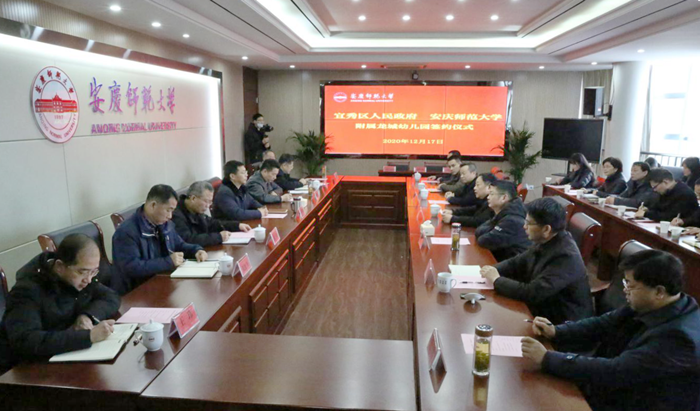 12月17日,学校与安庆市宜秀区人民政府在龙山校区举行共建附属龙城幼儿园签约仪式。副校长汪时珍,宜秀区政协主席汪龙生,市教体局副局长周泉,北部新城建设管理局局长吴传斗,中安龙山建设集团董事长汪小苗等出席仪式。学校发展规划处、教师教育学院、学校办公室、校市合作办公室、基建与后勤管理处、工会,市教体局,宜秀区教体局、住建局等单位负责同志参加了签约仪式。仪式由周泉主持。