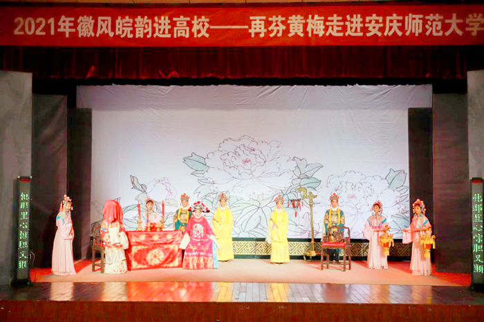 吴照明在演出开始前致辞。吴照明对2021年“校园大舞台——徽风皖韵进高校活动”走进77779193永利表示欢迎,对再芬黄梅艺术剧院演职人员和为本次演出付出辛勤劳动的工作人员表示衷心感谢。吴照明指出,学校始终坚持“特色兴校,质量立校”的发展战略,多措并举促进中华优秀传统文化的传承发展,扎实推进大学生美育工作。吴照明要求,学校相关部门和学院要充分挖掘戏剧教育的育人功能,让其转化为思想政治教育的有效课堂和美育的实践场域,让学生们在实践学习中学习发现美、欣赏美、创造美,助力立德树人根本任务;要进一步推进中华优秀传统文化的传承发展,凝聚价值认同,在戏曲人才培养、戏曲艺术研究、戏曲文化推广基础上,打造一批有影响、有特色、高质量、高品位的校园文化品牌,不断涵养中华优秀传统文化、根植家国情怀、培育民族精神,让中华优秀传统文化在校园扎根,在同学们心中扎根;要进一步增强文化自信,增强志气、骨气、底气,帮助学生以正确的态度认识和对待传统文化,从中汲取丰富营养,切实提高审美和人文素养,感国运之变化、立时代之潮头、发时代之先声,笃信笃行、自信自强。