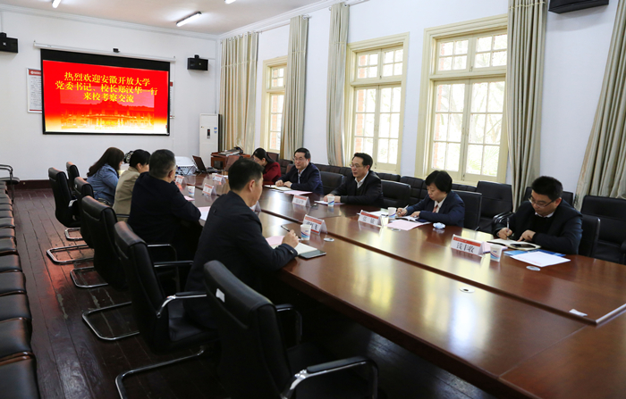 3月25日,安徽开放大学党委书记、校长郑汉华一行来永利官网调研。校党委书记许继荣、副校长吴琼接待了郑汉华一行。
