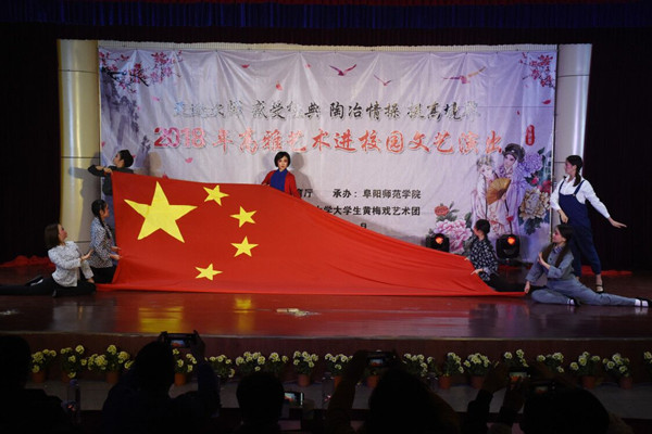 “高雅艺术进校园”活动是国家教育主管部门促进高校素质教育的重要举措,旨在将高雅艺术融人校园文化建设,达到艺术教育“润物无声、育人无形”的效果。2009年,永利官网大学生黄梅戏艺术团经过遴选,成为全国“高雅艺术进校园”的65家团队之一。9年来,艺术团走进全国50多家高校,用精彩的演出传递了黄梅艺术之美,让传统文化在青年学子心中扎根。“高雅艺术进校园”活动不仅是教学成果的一种展示,在这个过程中,以演促教、以演促学。同时,也有利于发挥高校社会服务职能,促进区域文化传播。