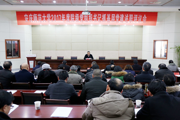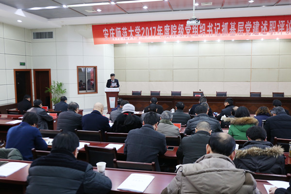 1月10日下午,永利官网召开2017年度院级党组织书记抓基层党建述职评议会。校领导许继荣、张群、汪时珍、刘友忠、胡腊香和校党委常委戴卫义、吴琼、苏本跃出席会议。各分党委(党总支)书记,各学院行政主要负责人,党委有关职能部门和团委、工会主要负责人,党代表、教代会代表、民主党派代表和教师代表等70余人参加了会议。会议由校党委书记许继荣主持。