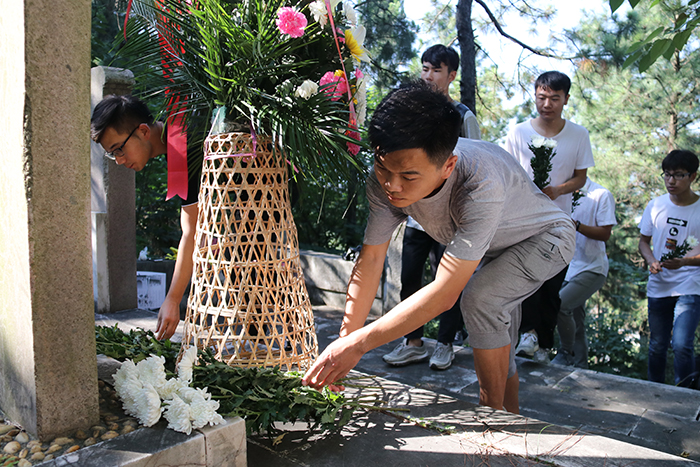 当天清晨,校团委负责人、部分团干部和团员青年代表前往刘文典先生墓园,敬献了花篮和鲜花,表达了对刘文典先生的深切追念和崇高敬意。校团委负责人现场向师生们介绍了刘先生主持安徽大学时期的佳话、学术成就和爱国情怀。(文/ 学生记者 朱丽萍 庞彦堃 图/学生记者 周正武 李金昭 朱羽)