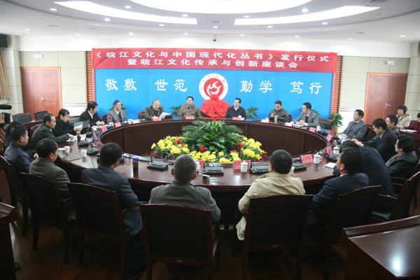 仪式结束后,永利官网领导,市宣传部、文化局、旅游局等部门领导,外评专家,丛书作者代表就“皖江文化传承与创新”主题举行了座谈会。校党委委员、副院长张群主持会议。