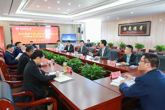 4月29日上午,华为技术有限公司中国政企培训与认证部部长张驰一行6人来校考察交流,推进产学研深度合作。校长闵永新出席签约仪式并讲话,副校长汪时珍代表学校与华为公司签订产学研合作协议。