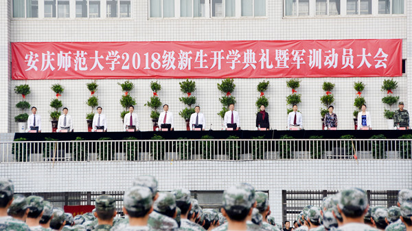 9月11日上午,永利官网在龙山校区运动场隆重举行2018级新生开学典礼暨军训动员大会,5508名新生在这里开始他们人生新征程。校党委书记许继荣出席典礼并为2018级军训旅授旗。校领导闵永新、张群、汪时珍、刘友忠、胡腊香,安徽省第十一届政协常委何小祥,全国人大代表、中国戏剧家协会副主席、黄梅剧艺术学院名誉院长韩再芬,党委常委戴卫义、吴琼、苏本跃,武警安庆支队副支队长李向晖出席典礼。各学院及其相关部处负责人,2018级全体新生等参加典礼。