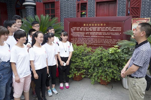 同学们长征路的第一站到达的是遵义会议旧址,“遵义会议是我党生死攸关的转折点,选择直接奔赴遵义开展活动也是体验教育最好的方式。”队长刘俊说道。庄严的建筑,肃穆的雕像,站在会址现场,感受老一辈革命家们在红军危急关头的伟大魄力,同学们无不心潮澎湃。“之前都是在历史课本上读到遵义会议,这次来到现场心里特别激动,仿佛能够感受到他们当年为革命奋斗的那种心情。”体育学院2013级休闲体育专业的汪洋说道。“让他们置身这种红色文化中,把历史课堂搬到遵义来,对他们就是最好的体验教育。”程启平强调要让同学们在亲身体验中感受一辈革命家们为革命胜利所做的伟大努力。一路上同学们唱着红歌,相互鼓励,在一个个革命旧址中切身感受和体会长征精神。