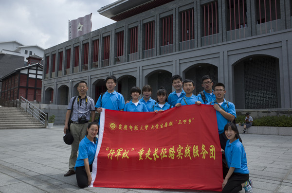 上午开展活动,下午赶赴下一个地点,实地考察,制定具体方案,为第二天开展活动做准备,在重走长征路的途中,每天如此。时间紧迫,任务繁重,团队里的每个成员晚上往床上一躺,立马睡着。这次重走长征路的十名同学,全部是90后。97年出生的金国琴是团队里最小的,重走长征路是她第一次出远门。十名同学彼此心目中都有一个共同的信念:跟随先辈们的脚步,去红军走过的长征路上看看,去感受老一辈革命家的光荣信仰……一路上,行程的辛苦、天气的炎热,让每个人都黑瘦了不少。但是,在途中亲身去体验实践带来的最直观深刻的感受,让团队的每一个人都觉得不枉此行。