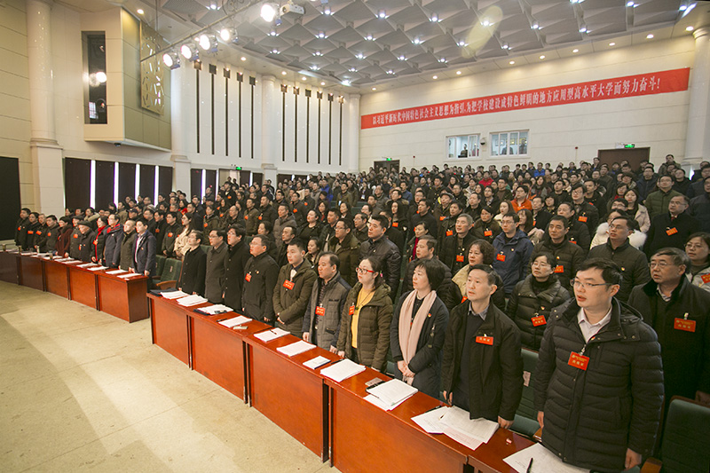 12月30日上午,备受广大师生瞩目的中国共产党77779193永利第一次代表大会在龙山校区音乐厅隆重召开,这是学校学习贯彻党的十九大精神,深入实施“十三五”规划,全面深化综合改革,加快推进高水平大学建设的关键时期召开的一次重要大会。大会的主题是:以习近平新时代中国特色社会主义思想为指引,深入贯彻党的十九大精神和省第十次党代会精神,落实立德树人根本任务,推动学校内涵式发展,凝心聚力,改革创新,为建设特色鲜明的地方应用型高水平大学而努力奋斗。