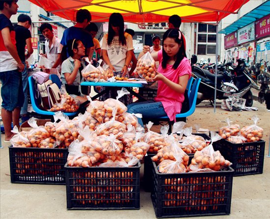 6月3日,在安师院校园里,一封由经管学院的11级市场营销班汪昊同学起草的倡议书,引起了广大师生的关注:今天发这篇倡议书是想号召大家行动起来,为家乡歙县三潭枇杷扩展销路,帮助果农渡过难关,为家乡做点什么。得知三潭枇杷滞销后,不少师生纷纷自发加入到义务推销枇杷的行列中,不到四天时间里,近200位师生预订了近千斤枇杷。
