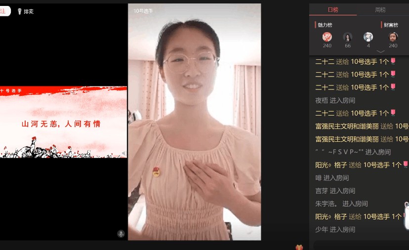 6月10日下午,由校团委主办的第四届“讲中华好故事,做时代好青年”讲演活动迎来紧张的决赛环节,决赛第二轮以线上直播的方式举行。