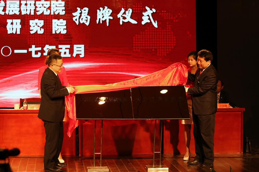会上,校党委书记许继荣与安庆市委常委、市政府党组副书记、常务副市长张君毅共同为大别山区域发展研究院和安庆发展研究院揭牌。