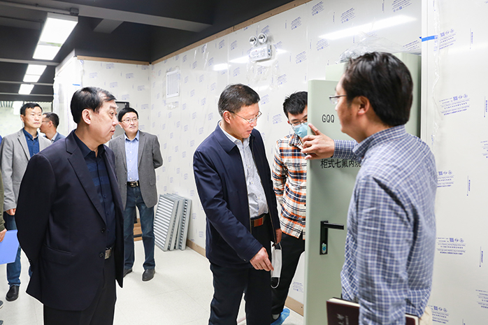 4月27日上午,校领导闵永新、刘友忠带队检查永利官网龙山校区数据中心机房建设工作,指导银校合作建设智慧校园工作。
