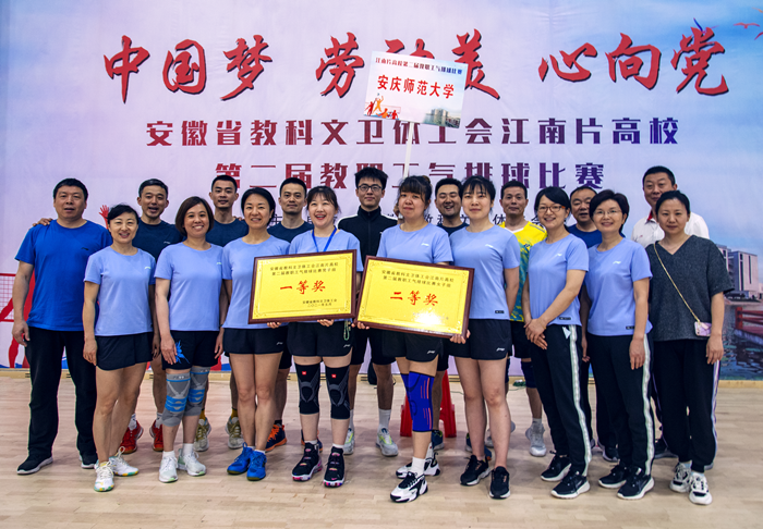 5月15日至16日,安徽省教科文卫体工会江南片高校第二届教职工气排球比赛在安徽师范大学举办,来自江南片十余所高校代表队参加比赛。永利官网教工代表队获得男子组一等奖和女子组二等奖的好成绩。