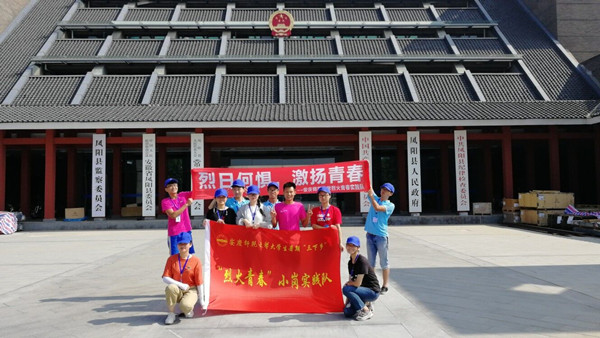学校习近平新时代中国特色社会主义思想青年研究会组建的“十九大精神学生宣讲团”的10名同学在指导老师的带领下前往安徽省6地,联合安徽师范大学和合肥师范学院,开展了以巡讲为主,叶脉书签制作、环保泥塑手工和改编歌曲等各种形式的宣传活动,将十九大精神传播给更多人。
