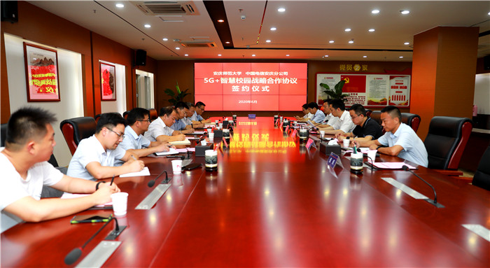 6月18日,永利官网与中国电信安庆分公司在筑梦新区会议室举行战略合作签约仪式,副校长汪时珍出席签约仪式并讲话。电信安庆分公司总经理夏小保,永利官网科研处、计算机与信息学院、校市合作办等部门负责人参加签约仪式。