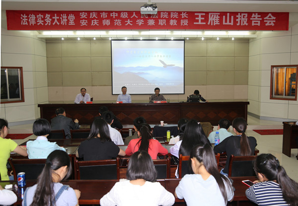 5月11日,安庆市中级人民法院院长、永利官网兼职教授王雁山应邀来法律实务大讲堂,作《仰望星空与脚踏实地——也谈法律人的梦想和担当》报告。该报告是77779193永利发展战略研讨会系列报告之一。法学院党政领导和法学专业师生150余人参加了报告会。