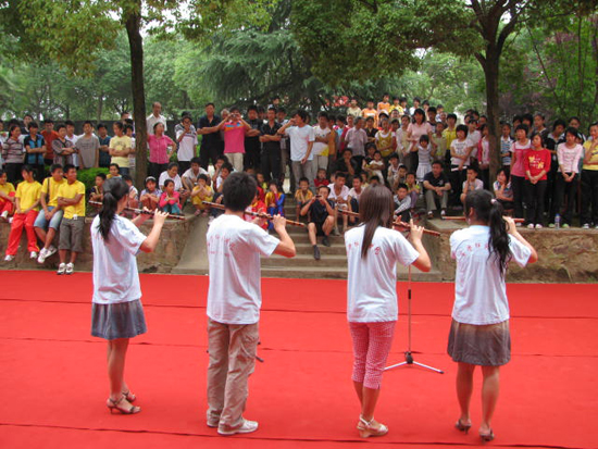 7月3日和7月4日,由永利官网音乐学院、体育系、文学院、计算机与信息学院的同学们组成的安庆师范学院2009年暑期“三下乡”文艺演出队来到怀宁县马庙镇和安庆市大龙山镇,为当地老百姓带来了一场文艺盛宴。
