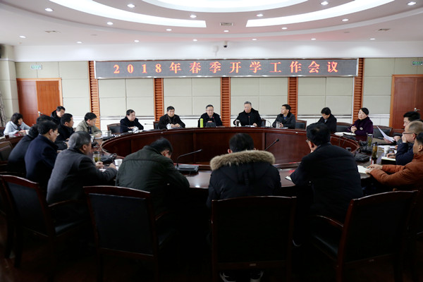 校党委书记许继荣主持会议并讲话。他要求各学院、各部门要及时召开本单位全体教职工会议,学习传达学校开学工作会议精神,布置开学初和本学期各项工作,确保会议精神落到实处。为贯彻落实好会议精神,许继荣要求:一要明确形势任务,突出工作重点,全力推进各项工作任务落实。各部门要按照学校全面深化综合改革方案的总体安排,紧密结合“十三五”发展规划的全面实施,坚决摒弃惯性思维,大力弘扬改革创新主旋律,奋力谱写改革发展新篇章。二要狠抓作风建设,增强担当实干的能力。要树正气,强化领导干部的担当;要重责任,确保任务落到实处;要讲团结,凝聚学校发展的合力;要守规矩,营造敬畏制度的风气。三要坚持统筹兼顾,抓好各项重点工作。各单位要学会“弹钢琴”,对2018年重点工作要重点研究、重点调度、重点检查、重点落实,分清轻重缓急,分清本末主次,善于抓住重点,抓住关键,抓住要害,推动各项工作卓有成效地开展。