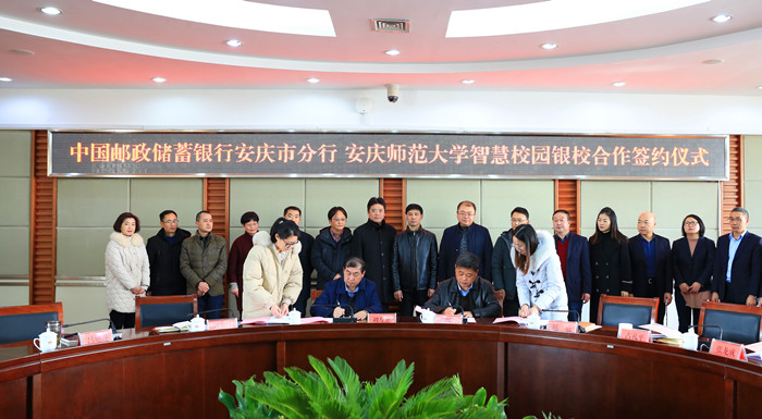 12月31日,永利官网与中国邮政储蓄银行安庆市分行举行银校合作签约仪式。校党委常委、副校长刘友忠,中国邮政储蓄银行安庆市分行行长戴四清出席签约仪式,并代表双方签署了校银合作协议。安徽省分行个人金融部总经理陈骏,永利官网和中国邮政储蓄银行安庆市分行有关部门负责人参加了签约仪式。