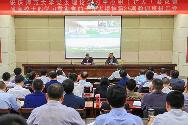 4月28日下午,学校召开校党委理论学习中心组(扩大)会议暨党的十九大精神第25期轮训班专题报告会。校领导,校党委理论学习中心组全体成员,全体在职处级干部,各学院、机关部分科级干部参加学习报告会。党委书记许继荣主持会议。