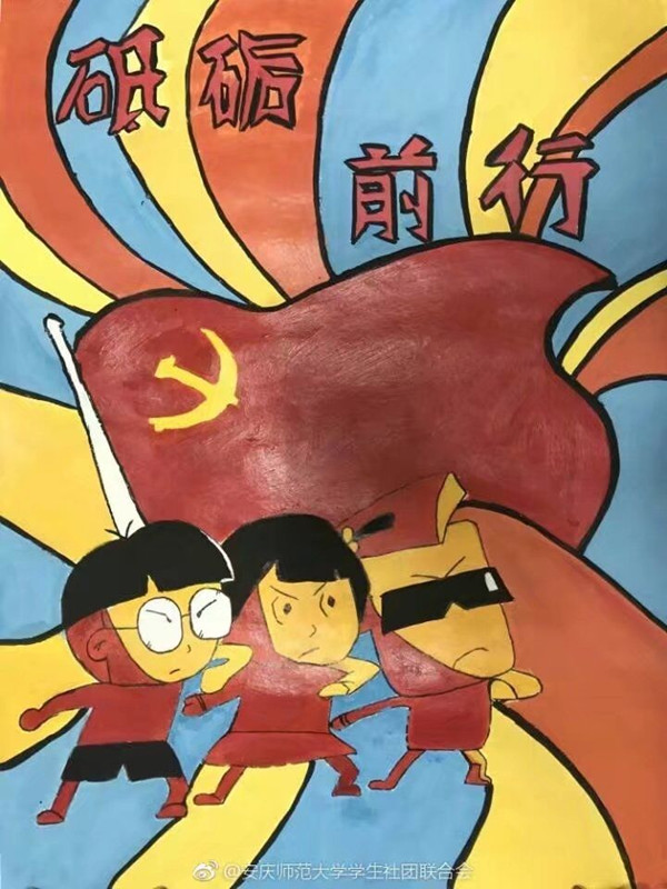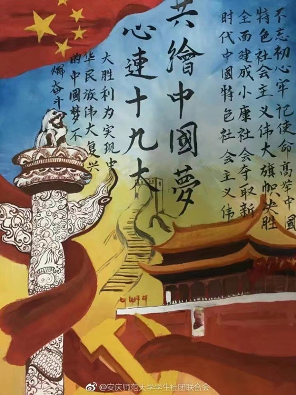 每个社团都以各自的社团文化为依托,从独特角度生动诠释主题,为十九大喝彩。大学生“加速度”羽毛球协会团支部作品取名“羽”党同行,用剪贴画的独特方式将真实的羽毛球贴在海报上与画中的人物巧妙融合,画中一个人物跳跃着挥舞球拍,另一个人物高举党旗,象征以青春活力来迎接十九大召开,“羽”党同行。大学生源动力阳光跑族团支部的海报将绚丽的七彩作为背景,青年放飞手中的和平鸽,握紧拳头,眼神坚定。海报以“我的青春,我的信仰”为主题,既高歌青春又不忘信仰。其他社团也将自己社团的理念、特点融入到海报作品中,从不同角度诠释了比赛主题,展现独具创造力的青年风貌。大赛分设一二三等奖以及最佳人气、最佳创意和最佳色彩等奖项,其中大学生职业发展协会团支部的作品《不忘初心,牢记使命》获得大赛一等奖。