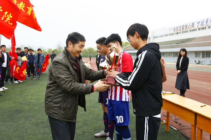 4月10日下午,2019年校综合运动会足球联赛闭幕。副校长张群出席闭幕式并为获奖代表队颁奖。学生处、体育学院相关负责人参加闭幕式。