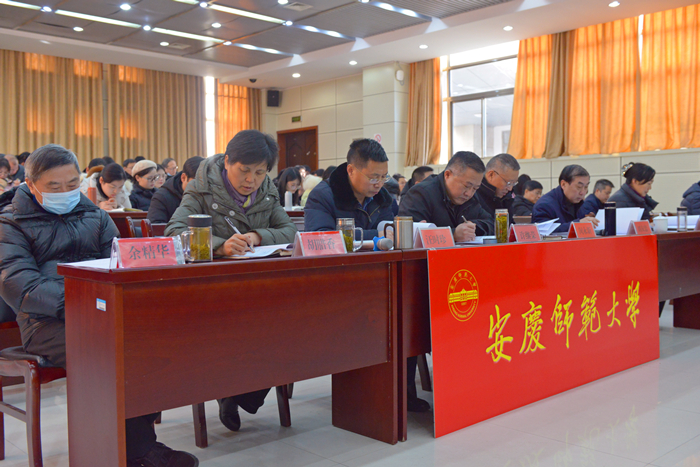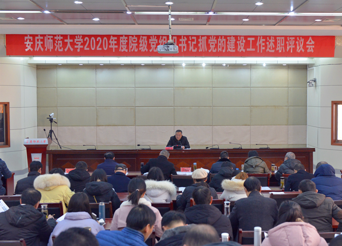校党委书记许继荣主持会议并讲话。他指出,开展院级党组织书记抓党的建设工作述职评议,既是对各单位一年来基层党建工作所获得的成果和事业发展所获得成就的梳理和回顾,也是对学校以高质量党建推动高质量事业发展的汇集和总结。通过此次述职来看,在2020年这特殊的一年里,各院级党组织书记高度重视基层党建,聚焦主责主业,强化责任担当,全心投入,工作开展扎实,述职主题突出,分析问题到位,改进措施得力,成效比较明显。他要求,各院级党组织书记要按照中央及省委决策部署,推进对习近平新时代中国特色社会主义思想,党的十九届五中全会精神和习近平总书记考察安徽重要讲话指示精神以及安徽省委十届十一次全会精神的学习,着力抓好省委巡视反馈问题的整改落实,全面推进新时代学校党的建设工作水平再上新台阶。要持续强化思想武装,自觉用习近平新时代中国特色社会主义思想武装头脑、指导实践、推动工作,要牢牢把握意识形态工作主导权,加强党对宣传思想工作的领导,积极构建齐抓共管、全员育人的大思政工作格局。要突出抓好党的政治建设,坚持把党的政治建设摆在首位,要旗帜鲜明讲政治,坚定政治立场,全面从严抓党建,提升政治能力,自觉为党育人,为国育才,把党的领导熔铸到学校内部治理各环节。尤其是各院级党组织书记要带头增强“四个意识”、坚定“四个自信”、做到“两个维护”,确保党的领导不偏不倚,严肃党内政治生活,持续净化优化政治生态和政治环境。要全面提升党的建设质量,坚持在质上做文章,切实提升学校基层党建工作水平和工作效果,彻底克服党的建设与事业发展“两张皮”现象;要以学校“十四五”规划编制为契机,落实学校党委重要工作安排,推进重大工作、重点任务、重要指标落实,推进党建和教育教学工作深度融合,实现党建引领事业高质量发展中发挥作用。