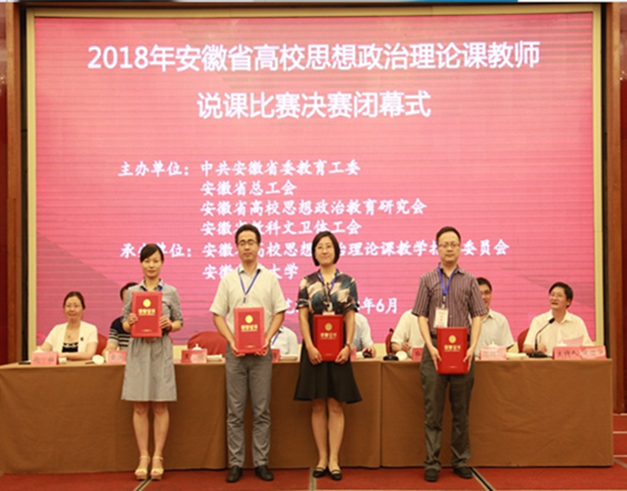 2018年安徽省高校教师思政课说课大赛决赛一等奖; 2019年全国高校思政课教学展示大赛二等奖,入选“安徽省高校优秀思想政治理论课示范课巡讲团”;2020年,入选安徽省高校优秀专职思政课教师......兢兢业业二十载,张铭老师始终以“三为六要”作为思政课教师的基本准则,做一名“乐为、敢为、有为”的“三为”教师。