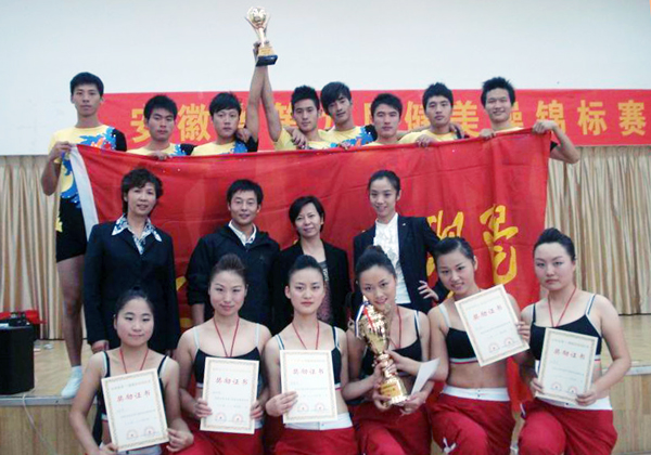 10月22日—23日,由省体育局主办、省健美操协会承办的安徽省第九届健美操锦标赛在省体育运动职业技术学院隆重举行。永利官网体育学院运动健儿在王云辉老师的带领下,经过精心准备和顽强拼搏,在本次比赛中获得了三金两银的优异成绩。其中杨阳同学获得男子单人项目竞技组第一名,焦健、杨阳、林伟伟同学获得三人项目竞技组第一名,吴鹏程、陈建健,赵浩杰、丁立、方锡球、林伟伟同学获得集体六人项目竞技组第一名,李皖、高莹莹、汪令娟同学获得三人项目大众组第二名,吴梦雯、董敏俊、华云菲、李皖、高莹莹、汪令娟同学获得集体六人项目大众组第二名。这是永利官网连续四年在安徽省健美操锦标赛中取得的骄人战绩。