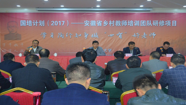 本次研修的主题是如何实施送教下乡培训和工作坊研修。在课程设置上,以切实提高乡村教师培训团队组织实施培训能力为导向,聚焦培训目标, 根据《安徽省乡村中小学教师培训团队研修省级课程结构建议方案》提出的要求,先后开设“乡村教师培训团队成员的使命与任务”,让所有学员明确自己的角色定位,意识到自己所承担的任务,让参训学员培训伊始便明确了学习目标;“教师培训需求的科学化分析”、“‘送教下乡’培训的设计与实务——基于教师在场学习力提升的送陪送训实践拓展”等专题讲座,回答了学员关注的问题:如何设计送培送训方案,如何组织实施送教下乡;要做的是先“精准诊断”乡村教师课堂教学存在的困惑与误区,再“对症示范”、“对比研磨”,最终“有效改进”。“校本研修的选题与行动方案设计”、“主题研修活动开展的策略与活动方案设计”、“什么是教师工作坊研修”、“怎样做一名幸福的教师工作坊坊主”等课程中,培训专家以自己多年坊主的工作经验,指导学员如何开展校本研修和工作坊研修。本次集中研修,邀请了来自北京师范大学、南京师范大学、浙江师范大学等高校的培训专家、基础教育学科带头人、一线教师、教研员担任主讲,既有理论上提升,又有大量的案例分析,让学员在培训能力方面切切实实得到了提高,深受学员欢迎。
