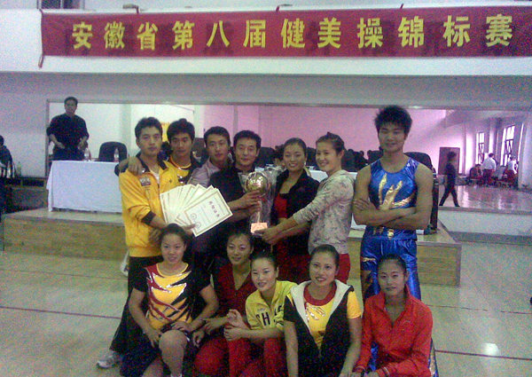 10月9日—10日,由省体育局主办、省健美操协会承办的安徽省第八届健美操锦标赛在省体育运动职业技术学院隆重举行。永利官网体育学院健美操队在该院王云辉老师的带领下,经过精心准备和顽强拼搏,在本次比赛中包揽了竞技组男子单人操、女子单人操、混合双人操、三人操和六人操等五个组别的冠军,同时,还获得竞技组六人操、大众组男子单人操、女子单人操等三个项目的亚军以及大众组三人操季军、大众组混合双人操和六人操两个第四名,并以总分第一的成绩荣获本次锦标赛的团体冠军。