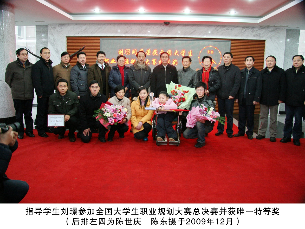 2009年,在他的指导下,外国语学院2006级(6)班的刘璟同学荣获全国大学生职业生涯规划大赛特等奖,他个人同时获得全国大学生职业生涯规划大赛总决赛优秀指导教师奖。这些荣誉的背后,是他对工作的高标准、严要求,对学生未来发展的切实关怀。而面对这些荣誉,他总是谦逊地表示还需努力。
